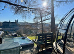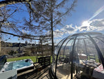 La Sphair est semi perchée à l'orée du bois, cependant vous êtes à 10 min du centre ville mais aussi à 10 min d'un resto super sympa accessible à pied par un sentier dans le fond du jardin, effet waouh et inimitée garantie !