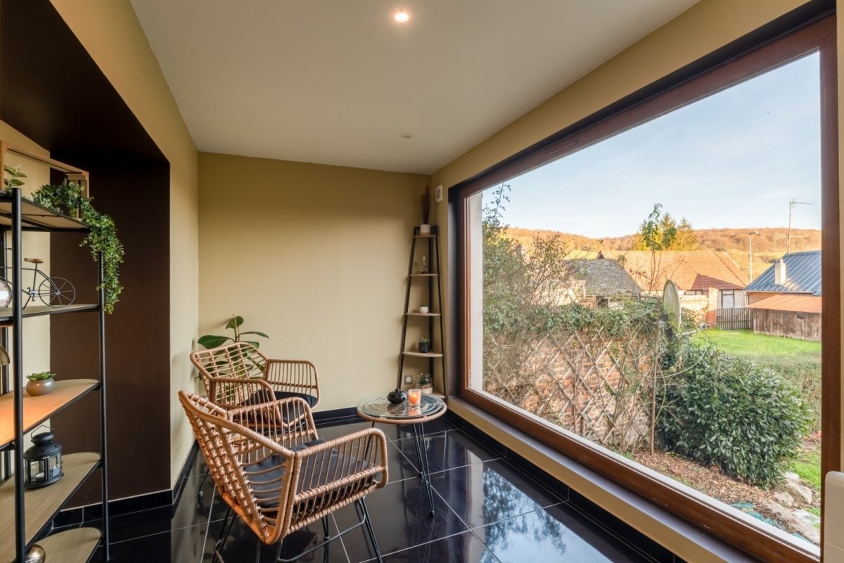 Dès l’entrée, vous serez séduit par le salon cosy avec sa cheminée chaleureuse, idéal pour se lover à deux.