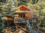 Une cabanne/chalet sublime avec énormément d'idée de décoration incroyable, un endroit des plus calmes en hauteur au cœur même de la forêt sans ville à côté, avec vu sur le coucher de soleil et les montagnes forestière depuis la terrasse avec jaccuzzi chauffé de luxe !