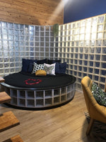 Cette love room vous charmera par son lit rond entièrement en briques de verre de 2m20 de diamètre avec sa salle d'eau qui allie verre et bois naturel, vous découvrirez sur la mezzanine de la chambre une balnéo de 2 places allongées, intégrée dans le sol avec sa chromathérapie et ouverte sur le ciel par une fenêtre coulissante de 2m sur 2m offrant une vue imprenable sur les étoiles le tout à l'abri des regards indiscrets.