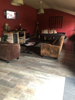 La balnéo jacuzzi semi-ronde, bordée d’un plancher en bois exotique rouge et adossée à un mur authentique en briques, offre une expérience de détente absolue, idéale pour un moment de complicité à deux.
