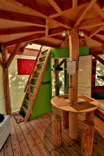 Pour votre confort, le Wigwam est équipé d'une vraie salle d'eau avec lavabo, douche et WC au rez-de-chaussée, où se trouve aussi la pièce à vivre.
