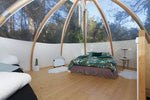 La partie haute où se trouve votre couchage est transparente et, avec votre moitié ou en famille, vous pourrez admirer les étoiles depuis votre lit… Pour les nuits fraîches, votre lit douillet est équipé d'un surmatelas chauffant.