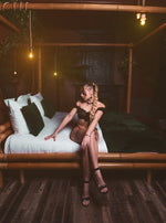 Lit baldaquin en bambou avec miroir et bruissement d’eau