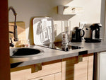 La cuisine se trouve face au jardin sans vis-à-vis ou vous pourrez préparer un bon petit plat pour chéri(e) avec plaques, frigo, micro-onde, ustensiles de cuisine ,... Afin de profiter un maximum tous les deux.
