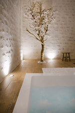 La suite “ L’élégante ” vous promet un moment de détente dans ce véritable lieu intimiste où se mêlent la douceur du blanc et le romantisme de la pierre. Son sauna finlandais, sa baignoire balnéo jacuzzi pour se relaxer en toute intimité et sa cheminée pour une touche de romantisme.