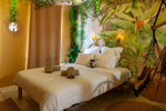Découvrez notre somptueuse Love Room, un véritable havre de paix et de romantisme conçu pour offrir une expérience inoubliable à nos visiteurs. Immergez-vous au cœur d'un cadre enchanteur, qui vous transportera dans un univers exotique et luxueux, idéal pour une escapade en amoureux.