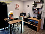 La suite comprend les espaces suivants : • Une pièce principale divisée en trois zones distinctes : un espace bien-être, un coin salon TV et une petite cuisine équipée. Dans le coin salon, une grande télévision connectée vous offre l’accès à Netflix, Spotify, YouTube, Internet, et bien plus. La cuisine dispose d’un réfrigérateur, d’un four combiné micro-ondes/traditionnel, d’une machine Nespresso, ainsi que d'autres équipements et accessoires. • Une chambre avec un lit boxspring ultra-confortable de 180 cm, équipée également d'une télévision. • Une salle de bain avec une grande douche à jets pluie et cascades.
