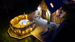 A l'extérieur, vous pourrez profiter d'une grande terrasse privée, entourée d'arbres. Chauffé au feu de bois, le bain nordique offre une expérience unique, quelle que soit la météo. Il est entouré de pieux en bois pour vous offrir toute l'intimité souhaitée. Une guirlande lumineuse vient compléter l'ambiance romantique du lieu. A la nuit tombée, vous aurez peut être la chance d'observer les étoiles et d'entendre le chant des chouettes hulottes.