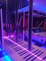 En descendant, laissez-vous séduire par la piste de pole dance avec son grand miroir, puis détendez-vous dans notre SPA privé, doté de multiples jets, 5 places assises et 2 allongées. Parfait pour se relaxer en dégustant une coupe de champagne. Une douche XXL et une salle de bain luxueuse vous y attendent. Une table de massage est également à votre disposition.