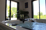 Vous pourrez vous détendre dans un spa deux places allongées 51 jets de massage réglables entièrement privatif, dans sa pièce dédiée donnant sur le jardin et sur le lever du soleil. Le spa est, bien sûr, accessible 24H/24 durant tout votre séjour.