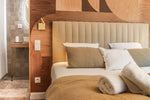 Pensée pour les couples en quête de romantisme et de sérénité, cette suite marie avec élégance bois naturel, lin et Zellige, créant une ambiance chaleureuse et intimiste. Chaque détail a été soigneusement imaginé pour vous offrir une expérience unique, loin du tumulte quotidien.