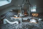 Ici, tout est fait pour vous faire voyager sans quitter la chambre, dans une ambiance chic, baroque et totalement dédiée au plaisir à deux.