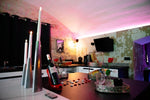 Canapés confortables et barre de pole dance pour des instants de complicité ou de séduction