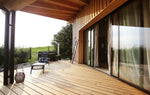 Dans cette pièce unique de 35 m2, tout a été pensé pour que l'on se ressource naturellement. Les teintes sont douces, le blanc et la couleur bois dominent pour mieux refléter la lumière. De grandes ouvertures laissent passer les rayons du soleil et donnent à voir la nature qui s'ouvre sous les yeux. Aucun vis-à-vis ne vient troubler le calme et la ligne de l'horizon qui s'étend à perte de vue.