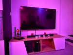 Une TV grand format et une enceinte haut de gamme complètent le confort pour accompagner votre soirée d’une playlist douce, d’un film complice ou d’une ambiance sonore immersive.