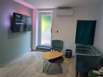 Située à Bettant, dans l’Ain, cette love room intimiste dispose d’un parking privé juste devant l’entrée et d’un accès autonome sécurisé par poignée connectée à code .