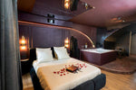 🌙 L’ambiance lumineuse tamisée, le minibar et le coffret love en option viennent compléter cette atmosphère sensuelle et élégante.