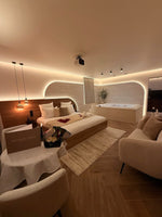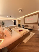 Transformez vos soirées en un véritable cinéma privé, grâce à notre lit-cinéma intégré. Confortablement installé, plongez dans vos films et séries préférés avec une projection de qualité, pour une atmosphère feutrée et immersive.