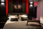 Élégante et haut de gamme, elle est un véritable cocon pour les soirées en couple. C'est une chambre lumineuse avec éclairage tamisé en soirée à la décoration raffinée. Elle est toute équipée: Un grand lit spacieux Queens seize et literie de qualité, fauteuil tantra, TV, vidéo projecteur 3m, barre son Wi-Fi Bluetooth, coin repas.
