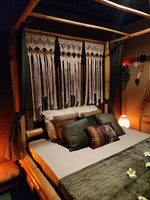 Sous un ciel végétalisé, laissez la magie opérer dans un lit à baldaquin romantique, bercés par les couleurs du coucher de soleil.