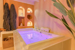 Vous y trouverez une baignoire balnéothérapie deux places, idéale pour partager un moment de relaxation intense à deux. Les jets massants favorisent la détente musculaire et transforment chaque bain en une véritable expérience sensorielle.