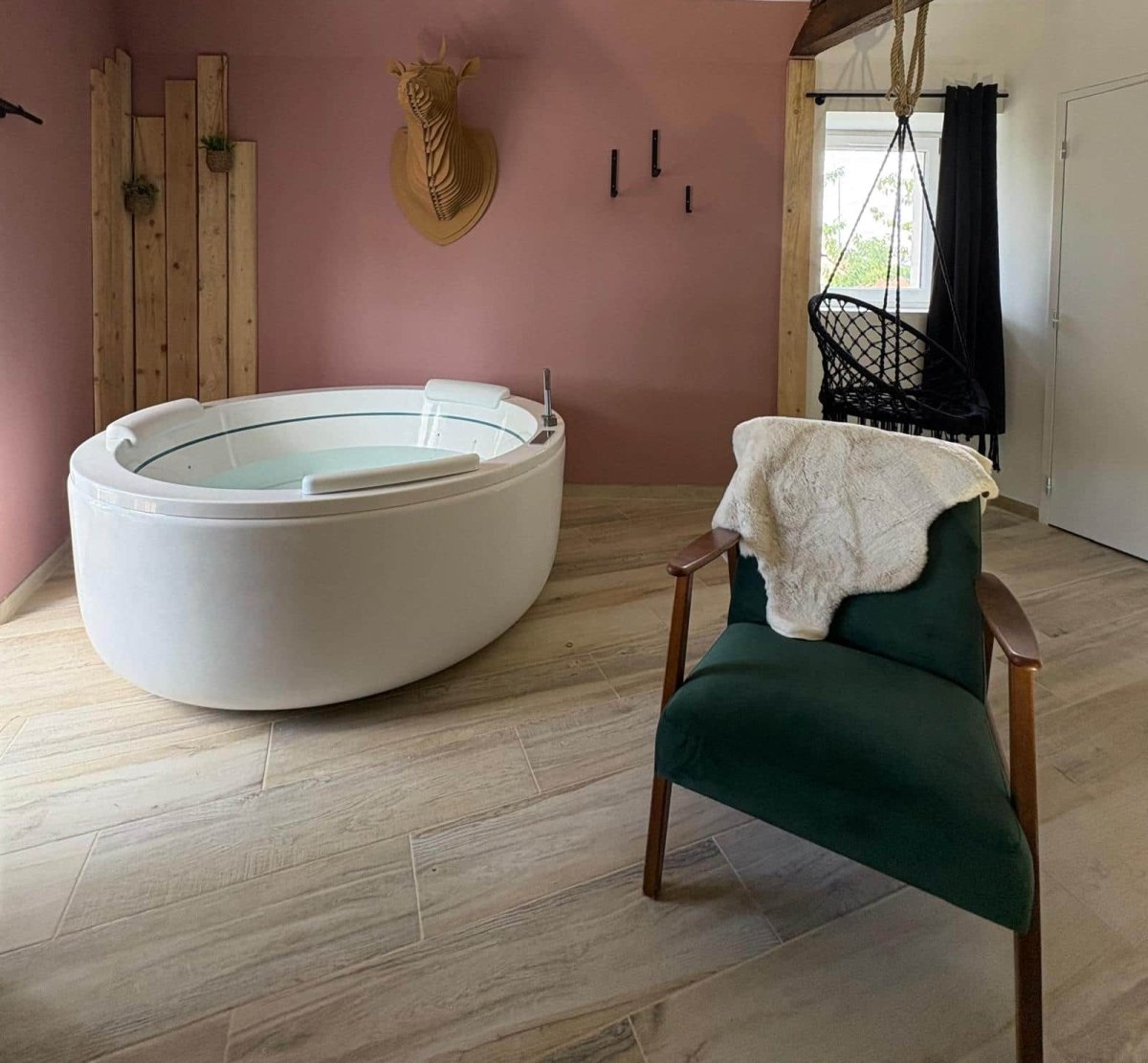Suite Romantique Prova – Love Room avec spa privatif dans le Perche Une parenthèse d’amour et de bien-être Offrez-vous une escapade romantique en Normandie dans la Suite Romantique Prova, un véritable cocon intimiste au cœur du Perche. Inspirée par la douceur du vieux rose, le bois brut et une ambiance feutrée, cette love room haut de gamme est pensée pour raviver la complicité et offrir une expérience unique à deux. Un espace bien-être privatif Spa...