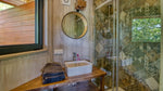 Ambiance campagne, chic, teintes pastels sur les murs, cette cabane de forme octogonale au charme discret délivre un sentiment d’apaisement et de zénitude. De l’autre côté du parc, les chevaux viendront souhaiter une douce nuit à leurs nouveaux voisins.