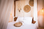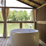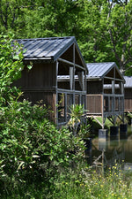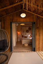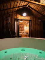 Les Cabanes Lacustres vous invitent pour un voyage sensuel et glamour au bout du monde. Pensées comme de véritables suites hôtelières, elles sont équipées de salle de bain privative, WC séparé, lit hôtelier haut de gamme de 200 x 160, kitchenette avec réfrigérateur, four micro-ondes, bouilloire électrique et cafetière Nespresso. La terrasse sur pilotis au-dessus du lac est une véritable pièce de vie avec transats, coin repas, fauteuil suspendu, douche extérieure et baignoire jacuzzi privatif pour de belles soirées en amoureux. Ce qui vous plait le plus ? La déco ethnique inspirée des îles grecques, africaines ou sud-américaines qui vous invite au voyage, et la connexion avec la nature grâce à l’immense terrasse perchée au-dessus de l’eau.